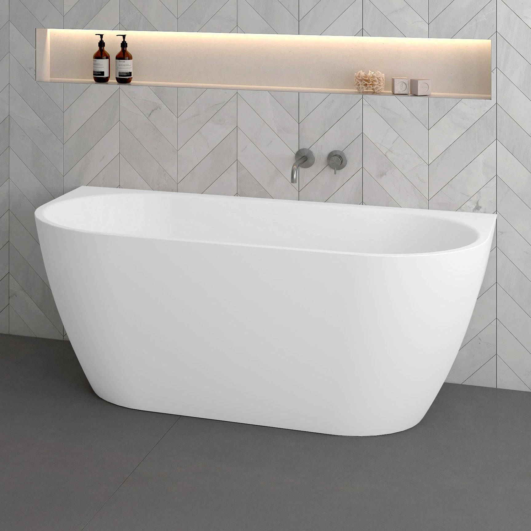 Discover elegance and durability with the Rina Gloss White Back to Wall Bathtub with Overflow. Crafted from sanitaryware grade acrylic, this 1700mm bathtub features a high-gloss finish that's UV-resistant and easy to clean, ensuring long-lasting beauty and effortless maintenance. Its warm touch surface and antibacterial properties enhance comfort and hygiene, making it ideal for modern bathrooms. The Rina bathtub is equipped with an integrated overflow system and slot overflow hole – preventing water damage, giving an added peace of mind and supporting proper drainage. Its composite reinforcement layer and acrylic bonding resin ensure structural strength, while a heavy-duty galvanized steel frame and adjustable feet provide stability and durability.