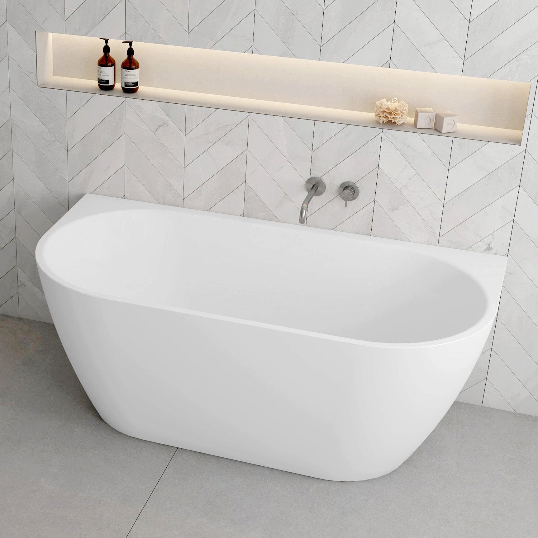 1700mm Back to Wall Bathtub with Overflow Rina Gloss White