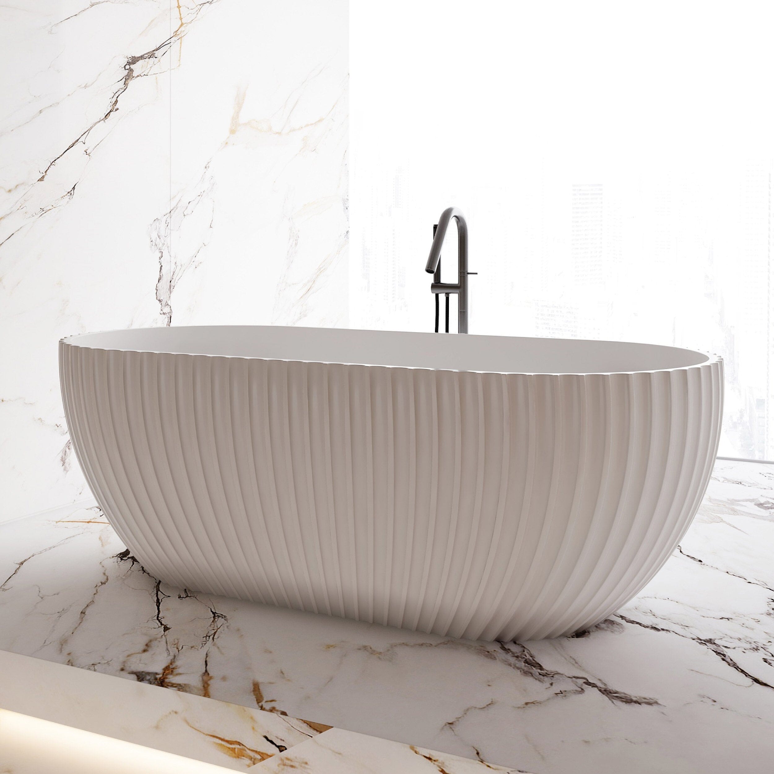 Experience the grandeur of the ALBA 1700mm shell fluted oval freestanding Bathtub, where the timeless beauty of the ocean seamlessly blends with contemporary design. This luxurious bathtub showcases a unique fluted design, reminiscent of the intricate patterns found in seashells, setting it apart as a centerpiece in any bathroom. Its spacious oval shape, accentuated by the gleaming gloss white finish, perfectly harmonizes with the shell-inspired fluting, offering both aesthetics and comfort.