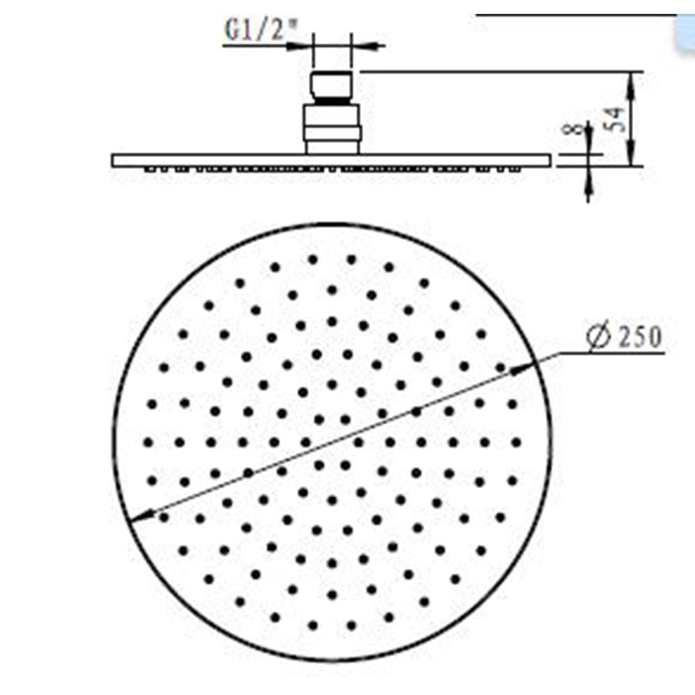 - Size: 250x8mm, providing a generous surface area for an immersive shower experience