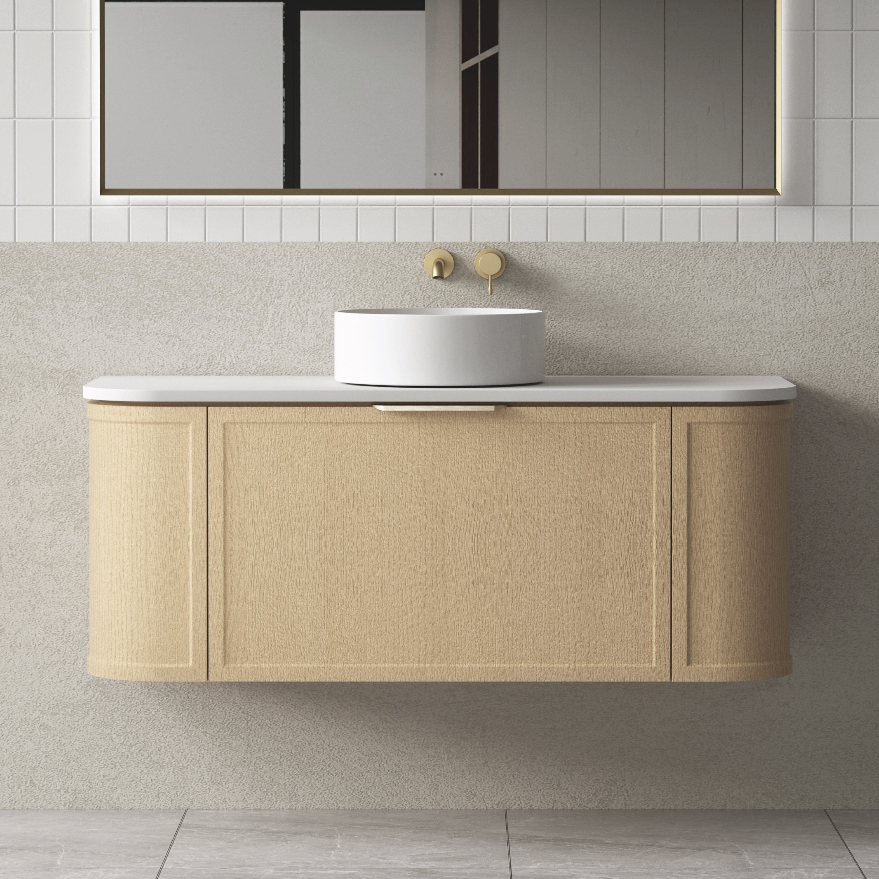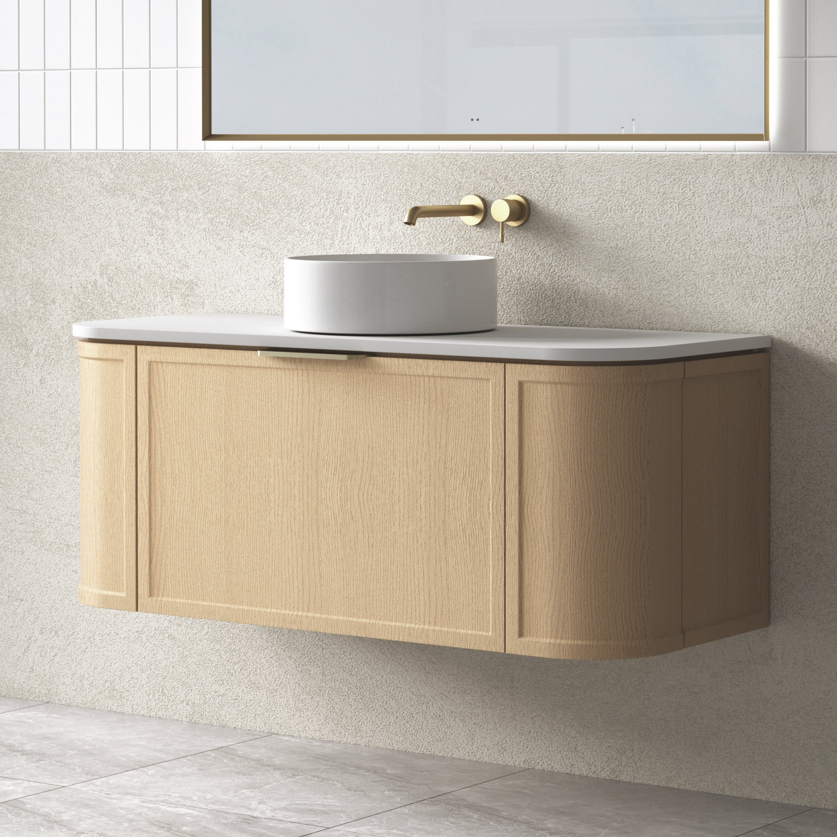 1200mm Curved Wall Hung Vanity Timber York