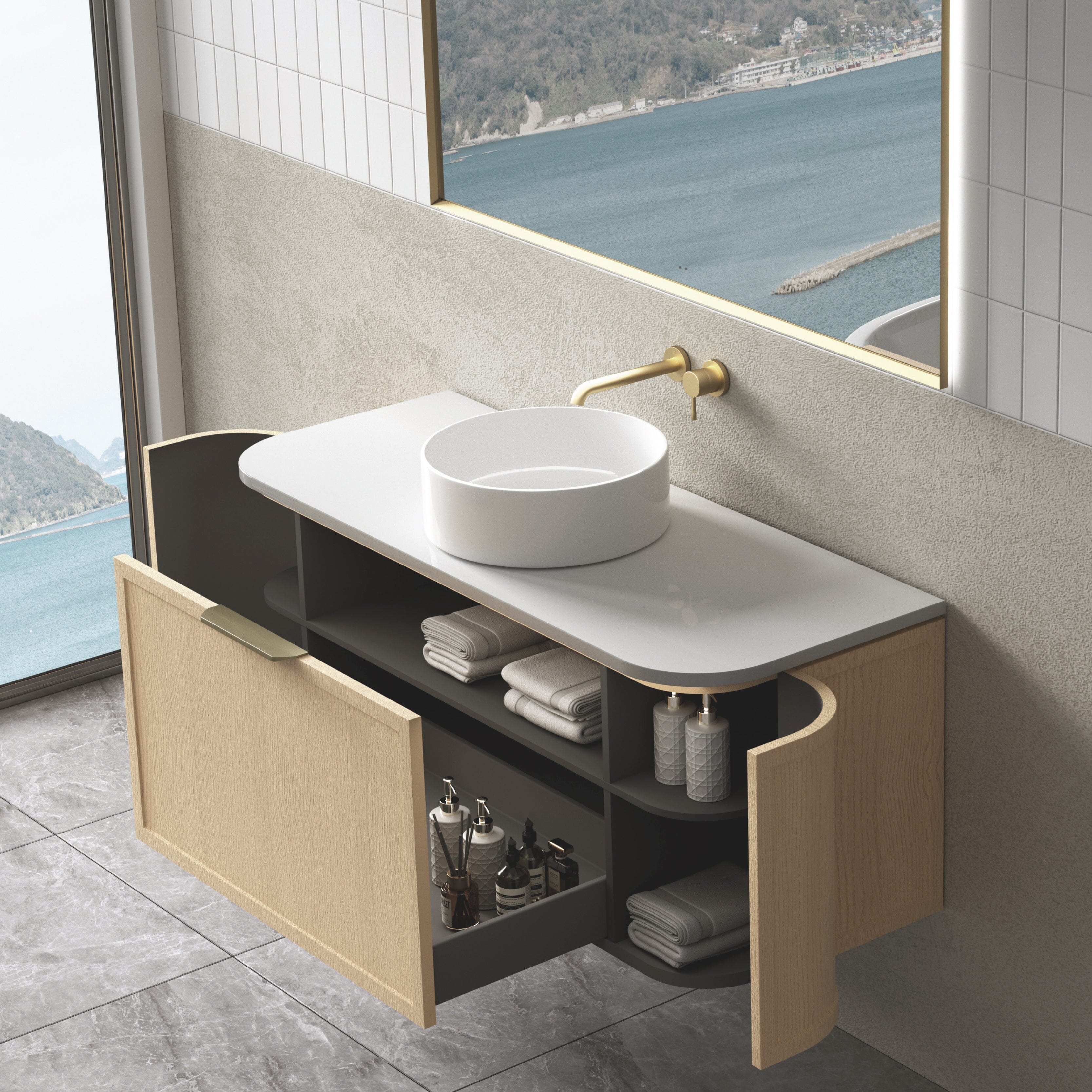 York 1200mm Curved Wall Hung Bathroom Vanity Timber
