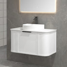 The York 900mm Curved Wall Hung Vanity by Arova merges sleek modern design with exceptional functionality, making it an ideal choice for contemporary bathrooms. Constructed from eco-friendly E0 Grade high moisture-resistant plywood, York matte white curved vanity ensures durability and moisture resistance, promising long-term reliability and protection from swelling. The York's smooth, curved edge and matte white finish bring a refined, elegant charm to any bathroom, complementing a variety of styles. The 900mm curved wall hung vanity matte white York features spacious storage options with soft-close drawer and side-opening finger-pull doors, providing ample space to organize bathroom essentials.