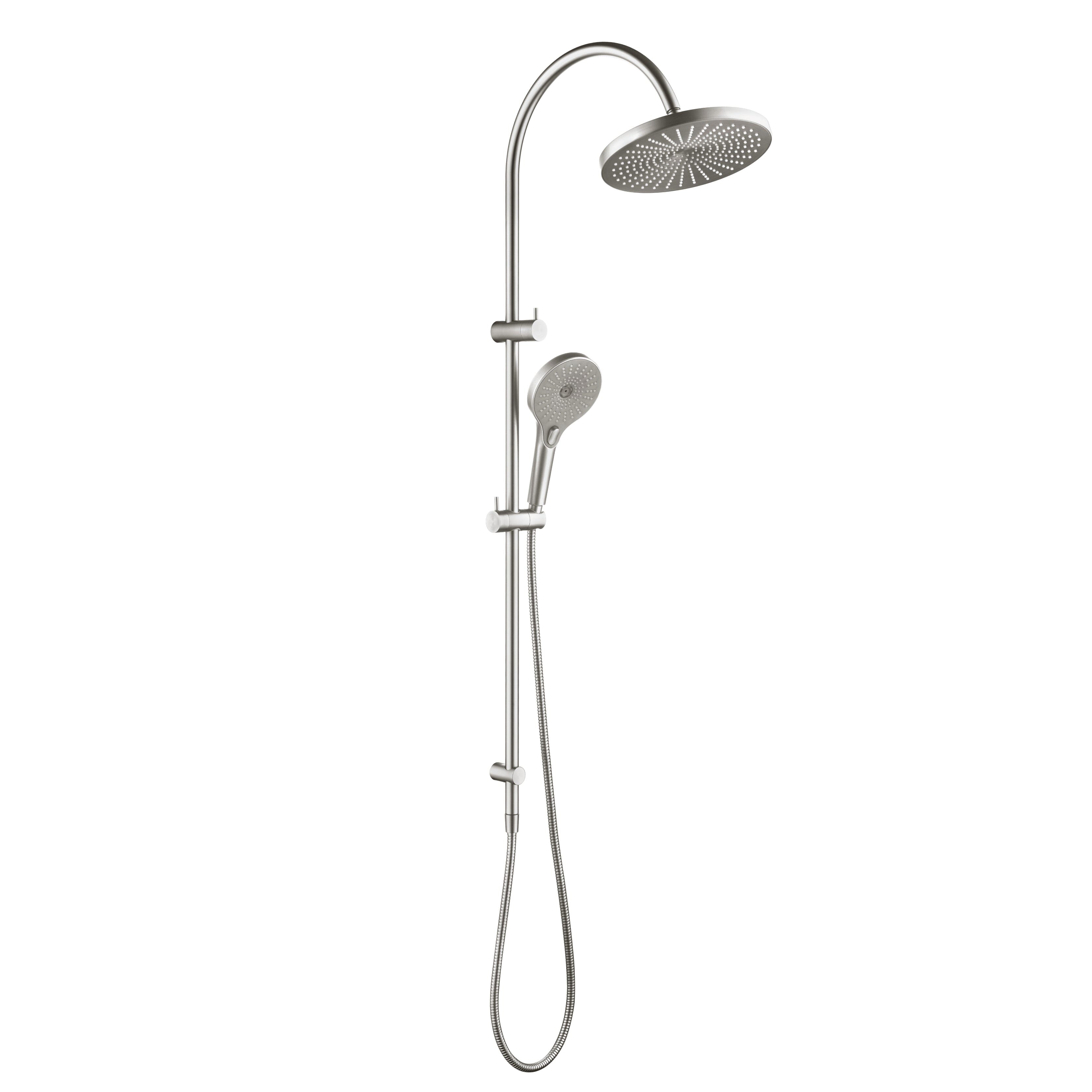 ORIO Round Gooseneck Dual Shower Air Shower Rail Brushed Nickel